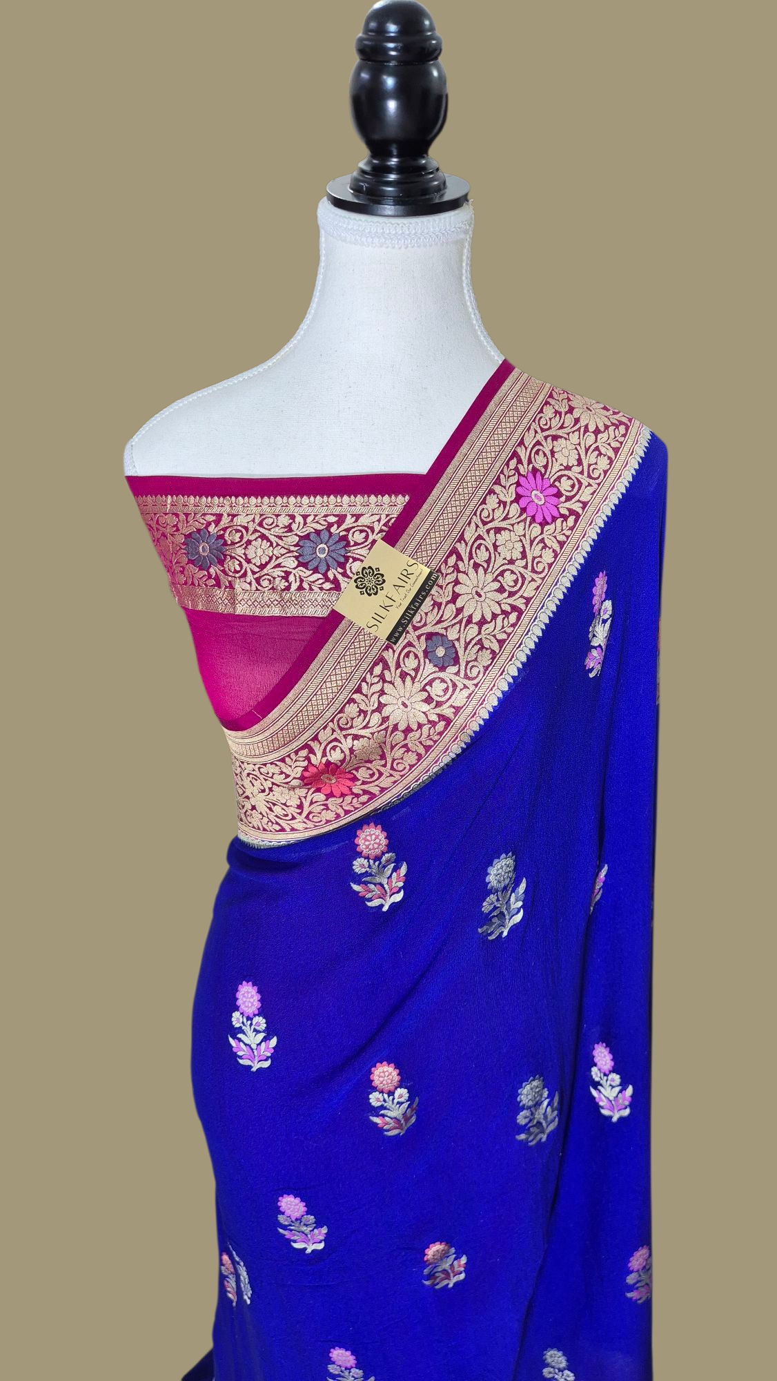 This Pure Crepe Silk Banarasi Saree is crafted from lightweight, finely woven...